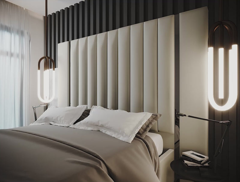 William Stripe Line Panel Wide Headboard Bed